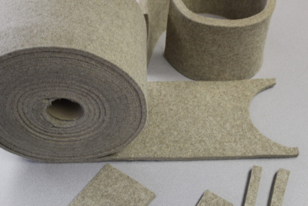 Sutherland’s Eco-Felt line is a low cost alternative, 100% tan wool felt that can be made in any density, from 1/8″ to 1″ thick. This felt is stocked in soft density, but can be custom manufactured to medium or firm density (minimum order applies). Depending on density, Eco-Felt costs 5-15% less than SAE grey felts (F-3, F-7), and 40-45% less than SAE white felts (F-1, F-5, and F-10). Call for a sample today!